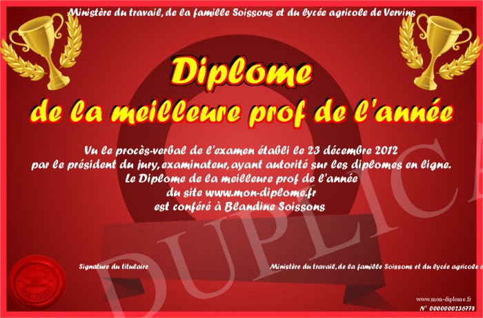 Envoyez par email votre Diplôme de la meilleure prof de l'année personalisé