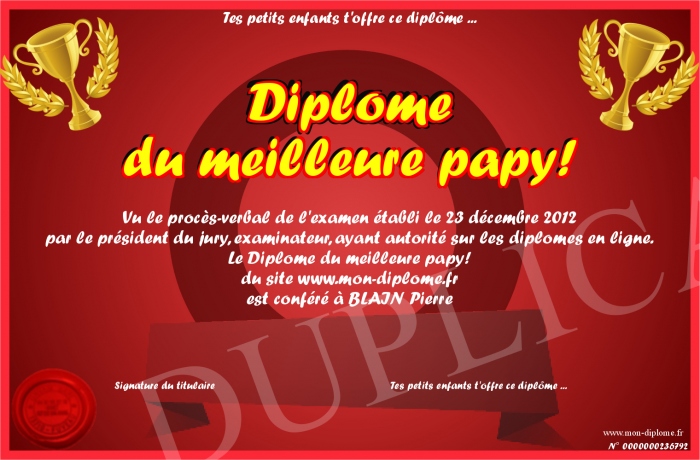 envoyé par le Tes petits enfants t'offre ce diplôme ... !