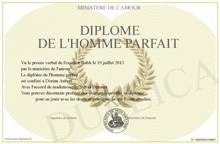 Envoyez par email votre Diplôme de l'homme parfait personalisé