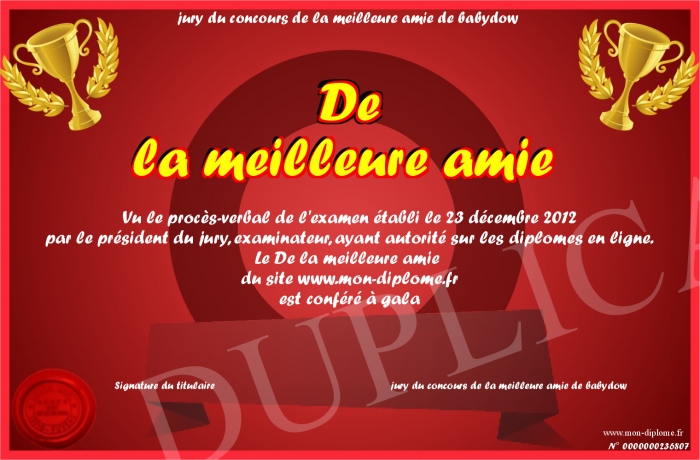envoyé par le jury du concours de la meilleure amie de babydow !
