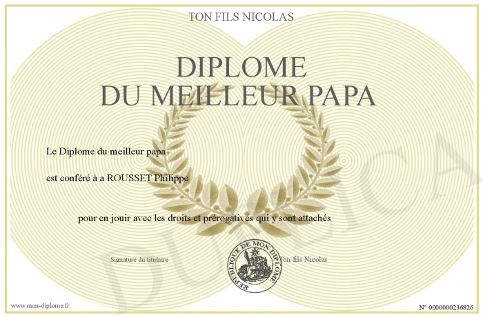 Envoyez par email votre Diplôme du meilleur papa personalisé