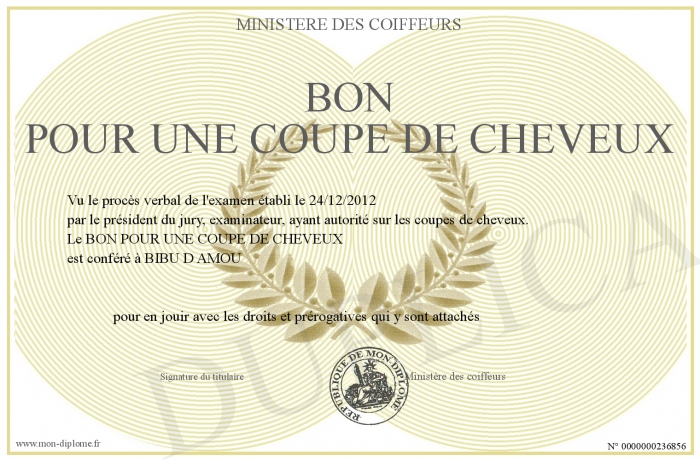 Envoyez par email votre BON POUR UNE COUPE DE CHEVEUX personalisé