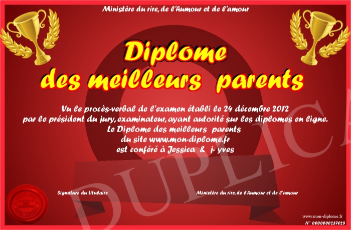 Envoyez par email votre Diplome des meilleurs parents personalisé