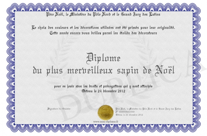 Envoyez par email votre Diplôme du plus merveilleux sapin de Noël personalisé