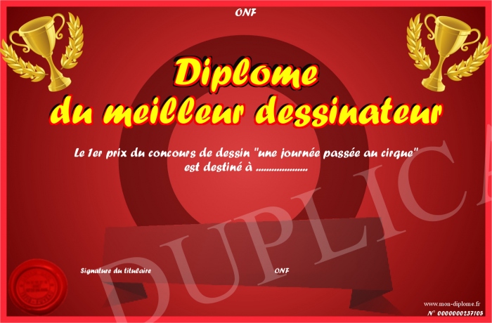 Envoyez par email votre Diplome du meilleur dessinateur personalisé