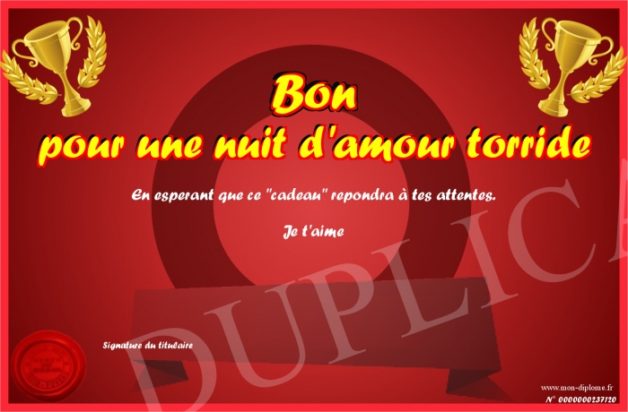 Envoyez par email votre Bon pour une nuit d'amour torride personalisé