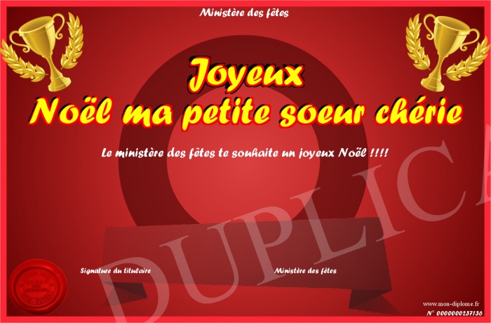 Envoyez par email votre Joyeux Noël ma petite soeur chérie personalisé