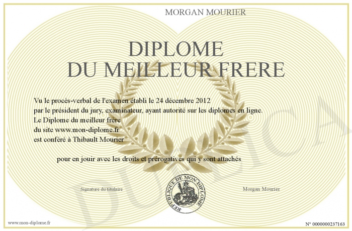 Envoyez par email votre Diplôme du meilleur frère personalisé