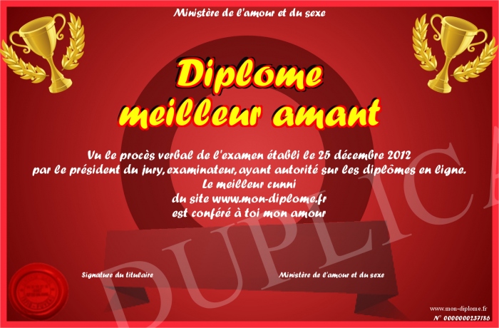 Envoyez par email votre Diplôme meilleur amant personalisé