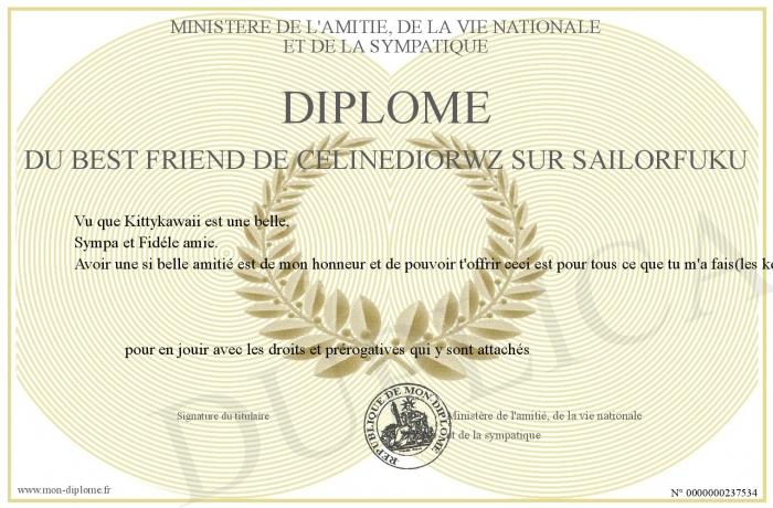 Envoyez par email votre Diplôme du best friend de Celinediorwz sur sailorfuku personalisé