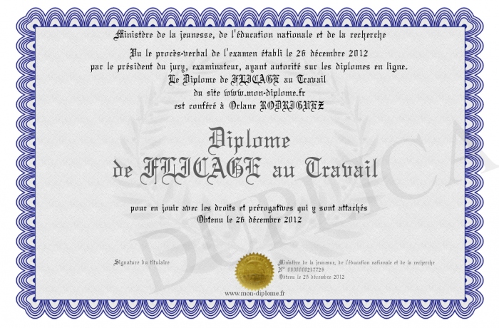 Envoyez par email votre Diplôme de FLICAGE au Travail personalisé