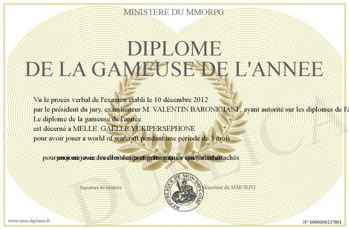 Envoyez par email votre Diplôme de la gameuse de l'année personalisé