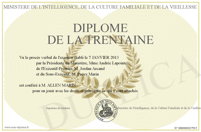 Envoyez par email votre Diplôme de la trentaine personalisé