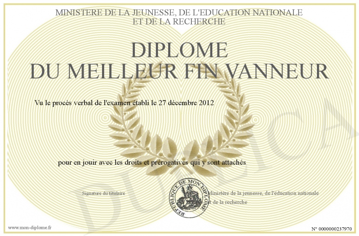Envoyez par email votre Diplôme du meilleur fin vanneur personalisé