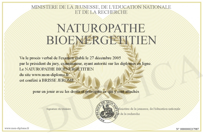 Envoyez par email votre NATUROPATHE BIOENERGETITIEN personalisé