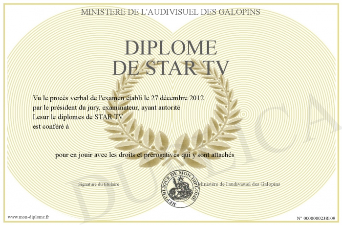 Envoyez par email votre Diplôme de STAR TV personalisé