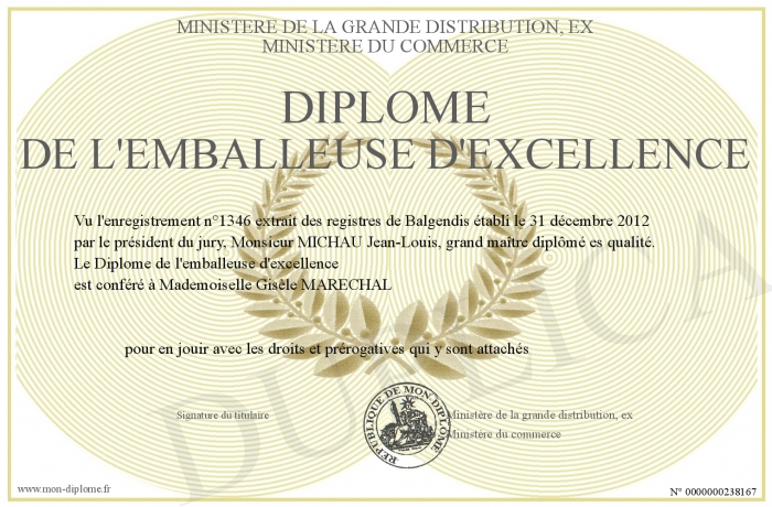 Envoyez par email votre Diplôme de l'emballeuse d'excellence personalisé