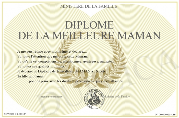 Envoyez par email votre Diplôme de la Meilleure MAMAN personalisé