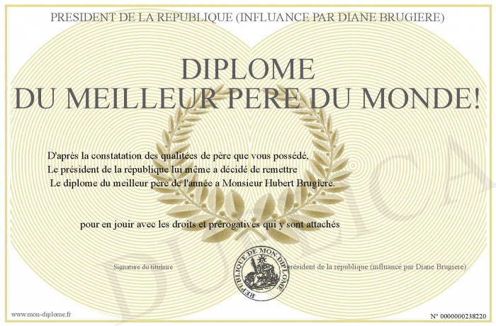 Envoyez par email votre Diplôme du meilleur père du monde! personalisé
