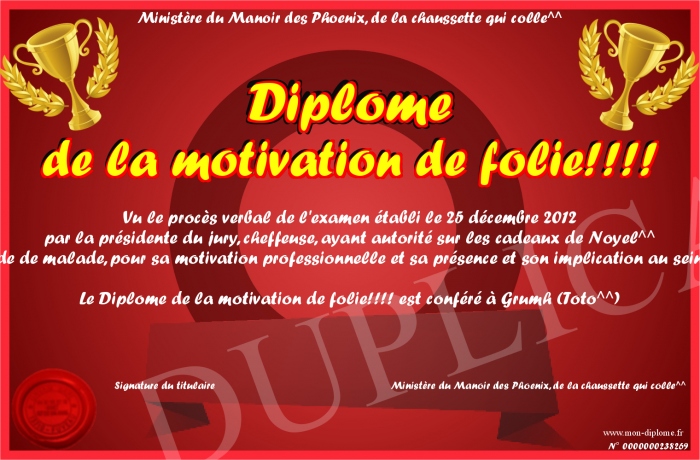 Envoyez par email votre Diplôme de la motivation de folie!!!! personalisé