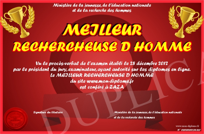 Envoyez par email votre MEILLEUR RECHERCHEUSE D HOMME personalisé