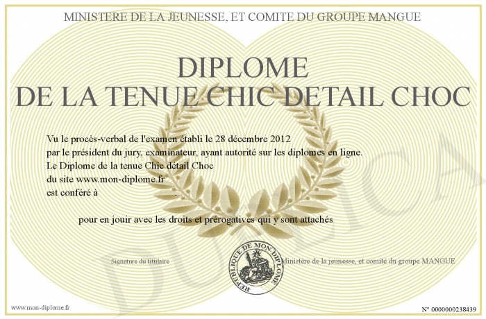 Envoyez par email votre Diplôme de la tenue Chic détail Choc personalisé