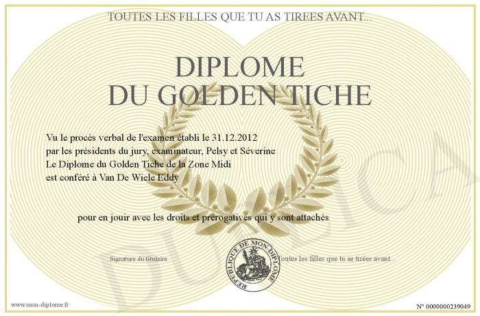 Envoyez par email votre Diplôme du Golden Tiche personalisé