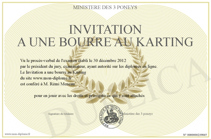 Envoyez par email votre Invitation a une bourre au Karting personalisé
