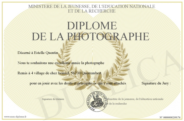 Envoyez par email votre Diplôme de la Photographe personalisé