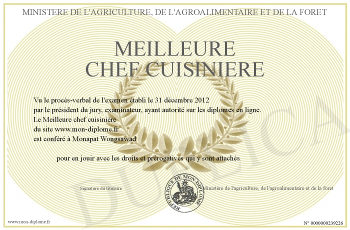 Envoyez par email votre Meilleure chef cuisinière personalisé
