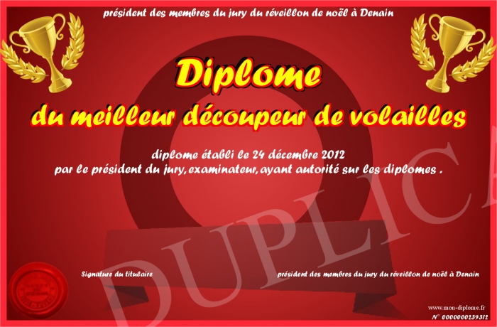 Envoyez par email votre Diplôme du meilleur découpeur de volailles personalisé