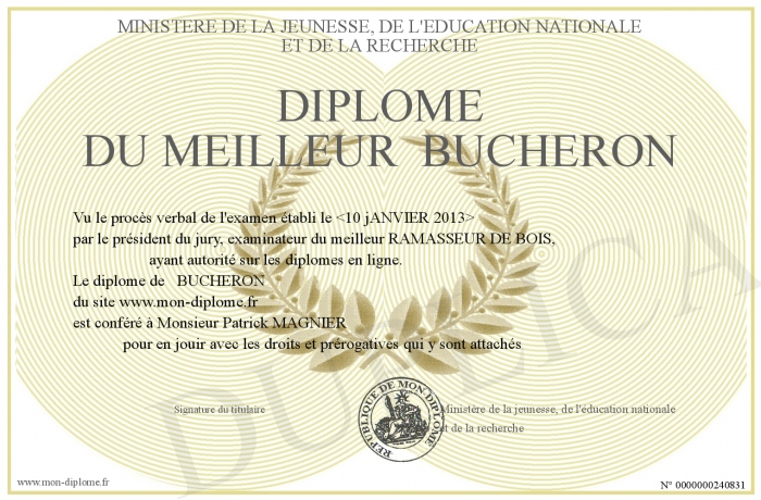Envoyez par email votre Diplôme du Meilleur BUCHERON personalisé