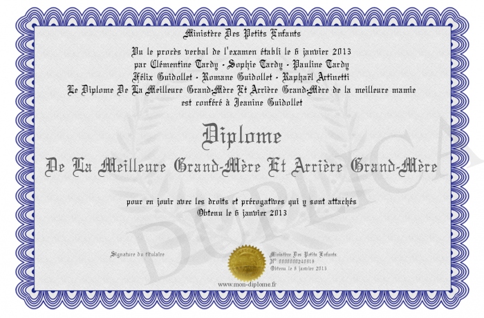 Envoyez par email votre Diplôme De La Meilleure Grand-Mère Et Arrière Grand-Mère personalisé