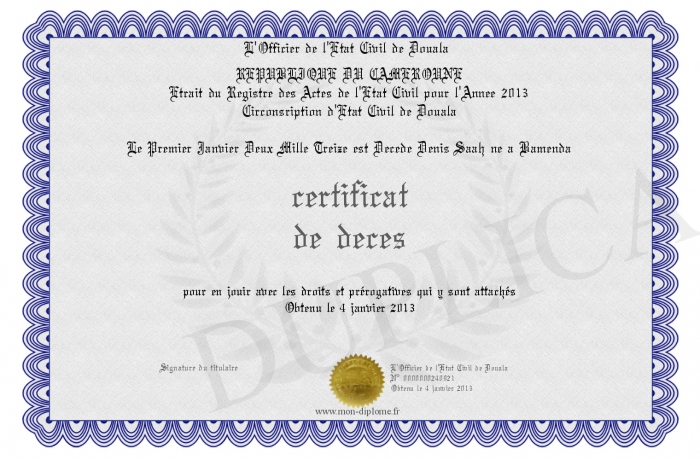 envoyé par le L'Officier de l'Etat Civil de Douala !