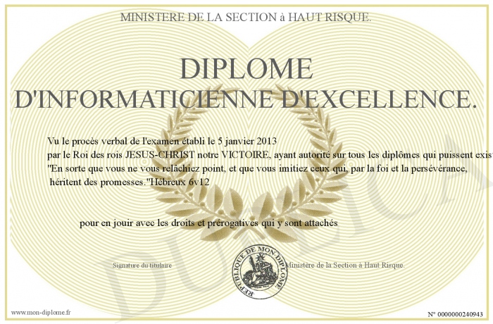 Envoyez par email votre Diplôme d'informaticienne d'excellence. personalisé