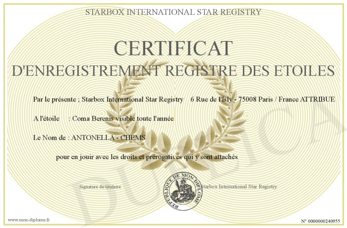 envoyé par le Starbox International Star Registry !
