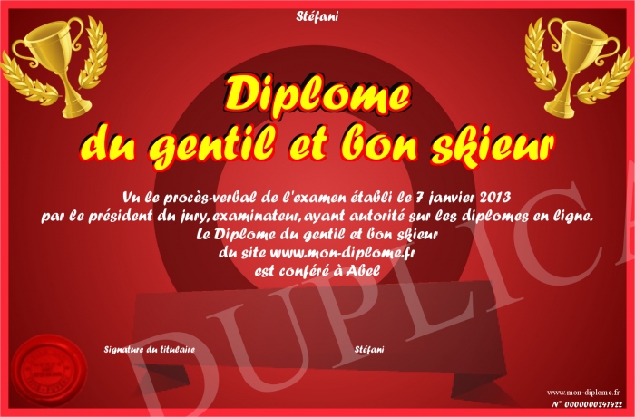 Envoyez par email votre Diplôme du gentil et bon skieur personalisé