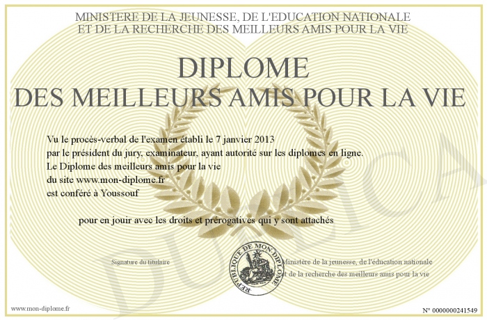 Envoyez par email votre Diplôme des meilleurs amis pour la vie personalisé