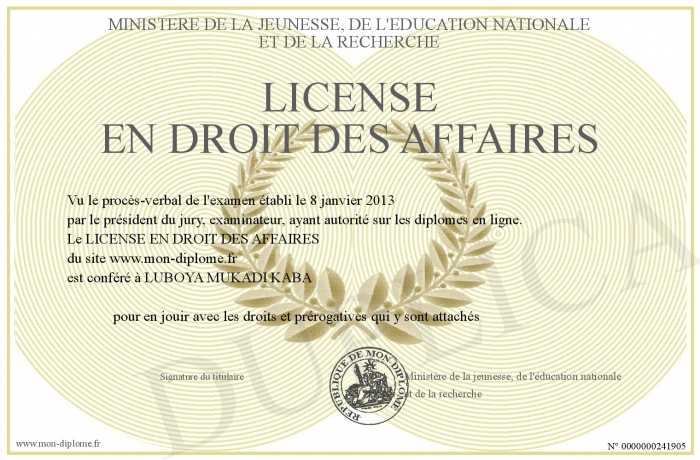 Envoyez par email votre LICENSE EN DROIT DES AFFAIRES personalisé
