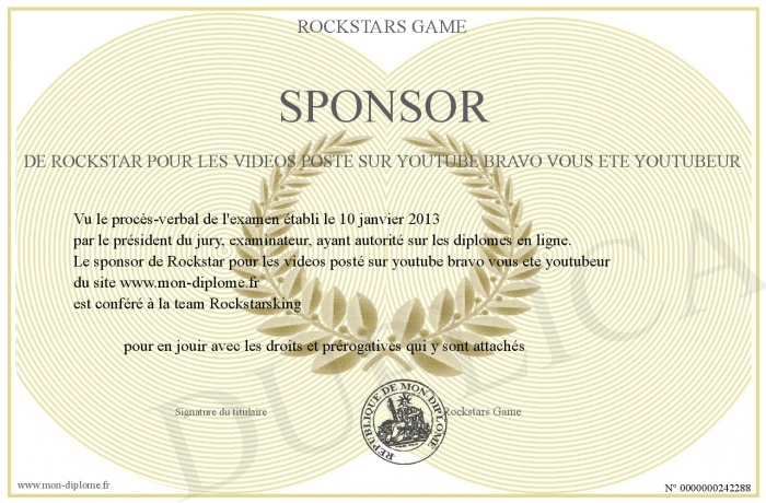 Envoyez par email votre sponsor de Rockstar pour les videos posté sur youtube bravo vous ete youtubeur personalisé