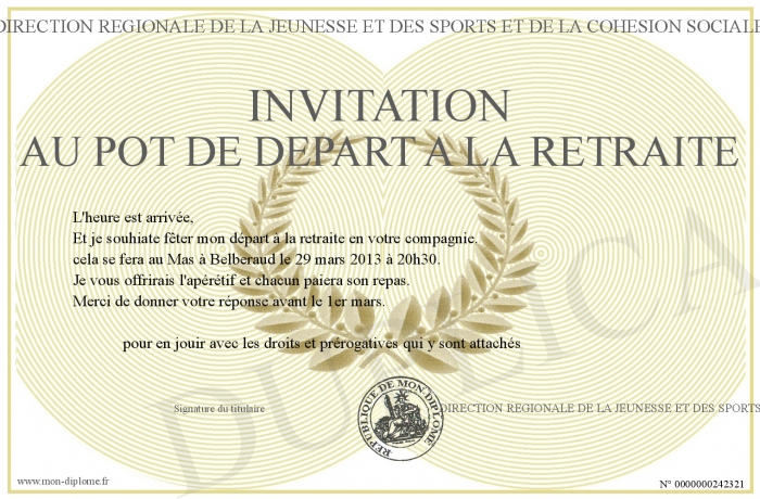 Envoyez par email votre INVITATION AU POT DE DEPART A LA RETRAITE personalisé