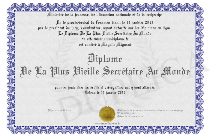 Envoyez par email votre Diplôme De La Plus Vieille Secrétaire Au Monde personalisé