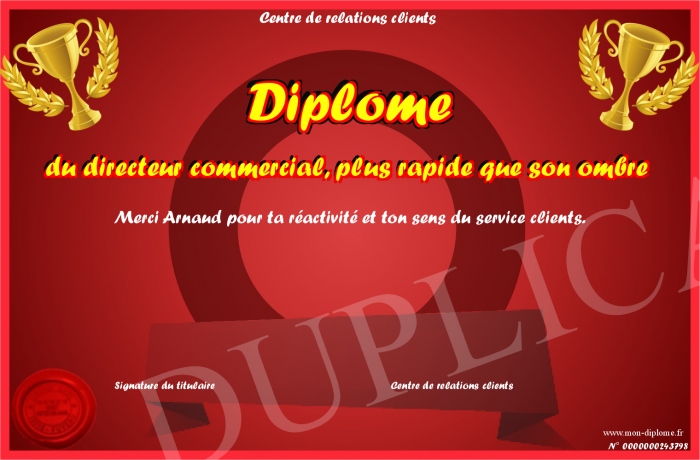 Envoyez par email votre Diplôme du directeur commercial, plus rapide que son ombre personalisé