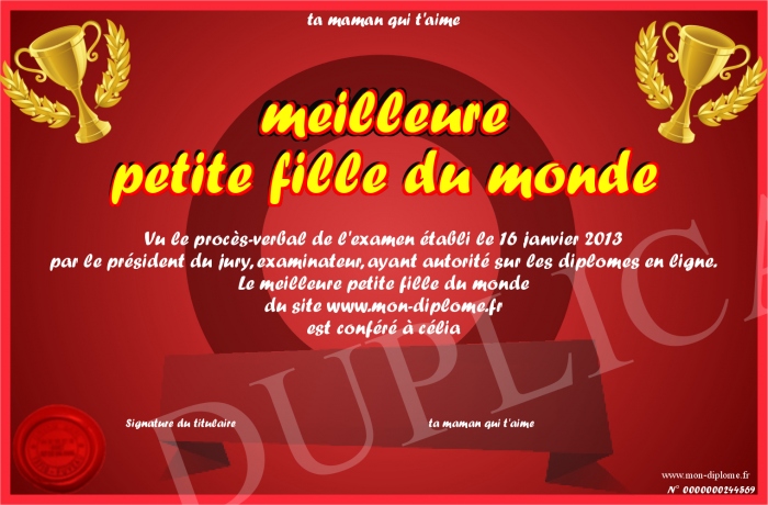 Envoyez par email votre meilleure petite fille du monde personalisé