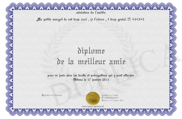 Envoyez par email votre diplome de la meilleur amie personalisé