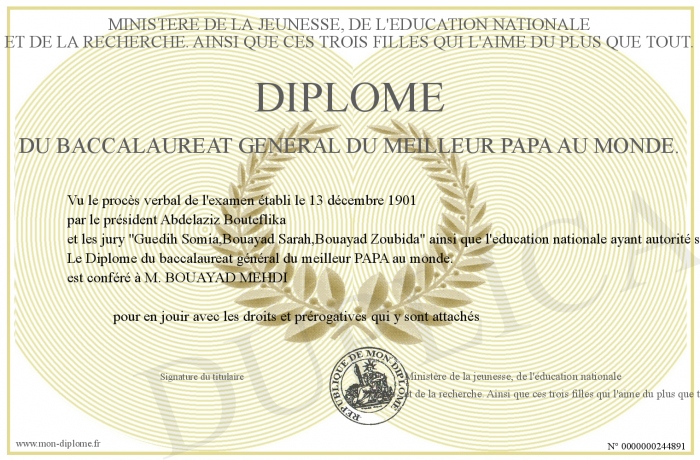 Envoyez par email votre Diplôme du baccalaureat général du meilleur PAPA au monde. personalisé