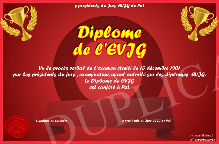 Envoyez par email votre Diplôme de l'EVJG personalisé