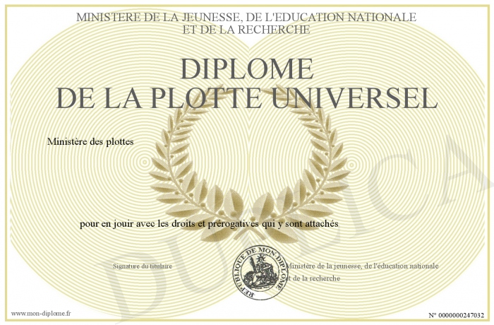 Envoyez par email votre Diplôme de la plotte universel personalisé