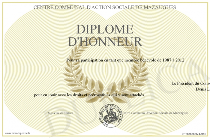 Envoyez par email votre Diplôme d'Honneur personalisé