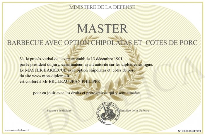 Envoyez par email votre MASTER BARBECUE avec option chipolatas et côtes de porc personalisé